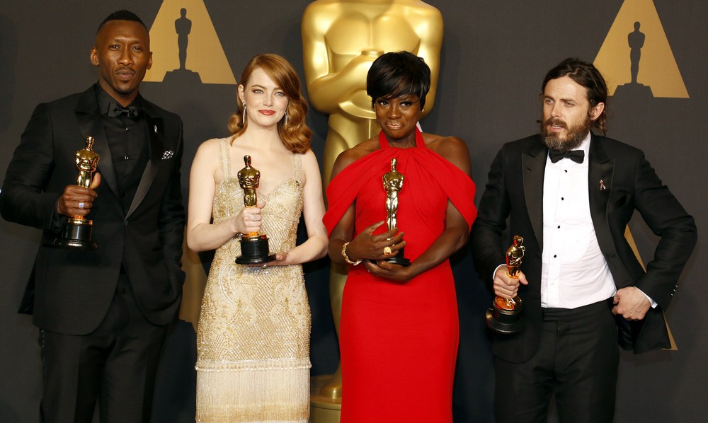 Mahershala Ali, Emma Stone, Viola Davis y Casey Affleck en la entrega de los Oscars 2017. Crédito: Shutterstock