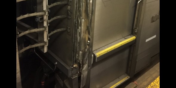 El accidente sólo ocasionó daños menores en los vagones. Crédito: (Twitter / Jordan Geary)