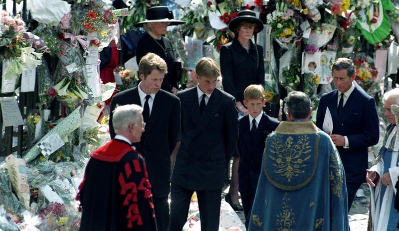 Los hijos de la princesa Diana a su llegada a la Abadía de Westminster, donde se celebró el funeral de la princesa. Crédito: EFE/Archivo