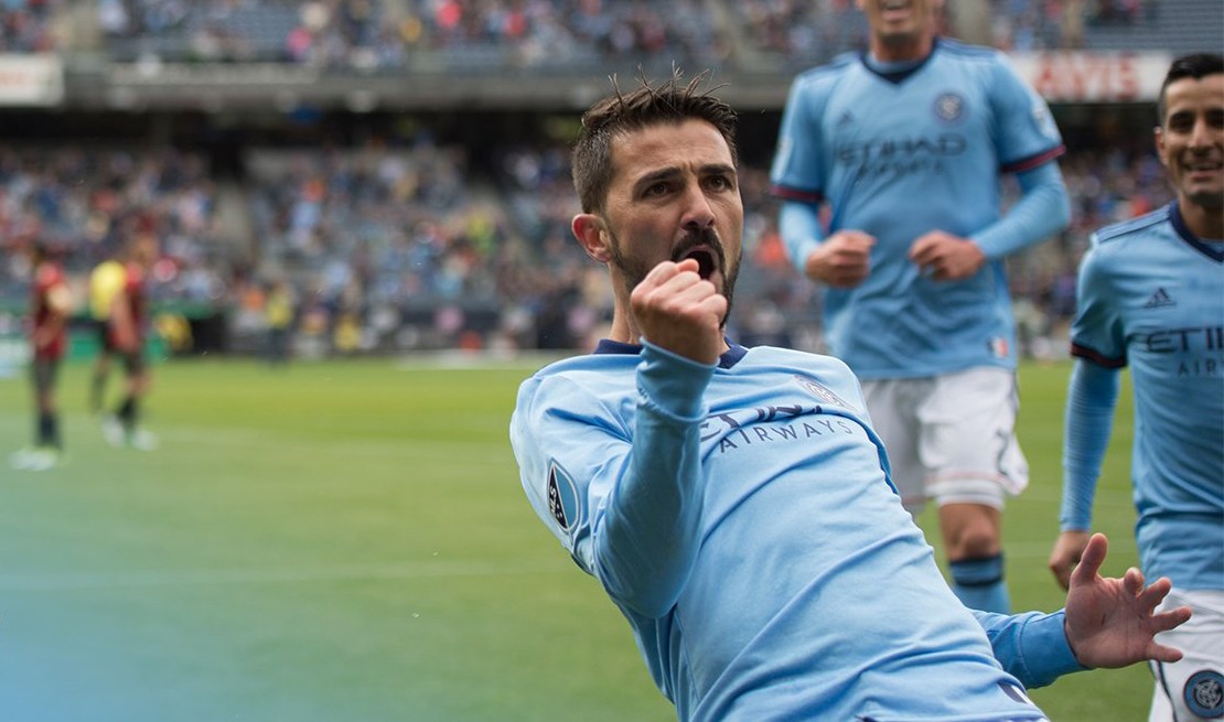 Villa celebrando el gol que abrió el marcador ante Atlanta. Crédito: NYCFC