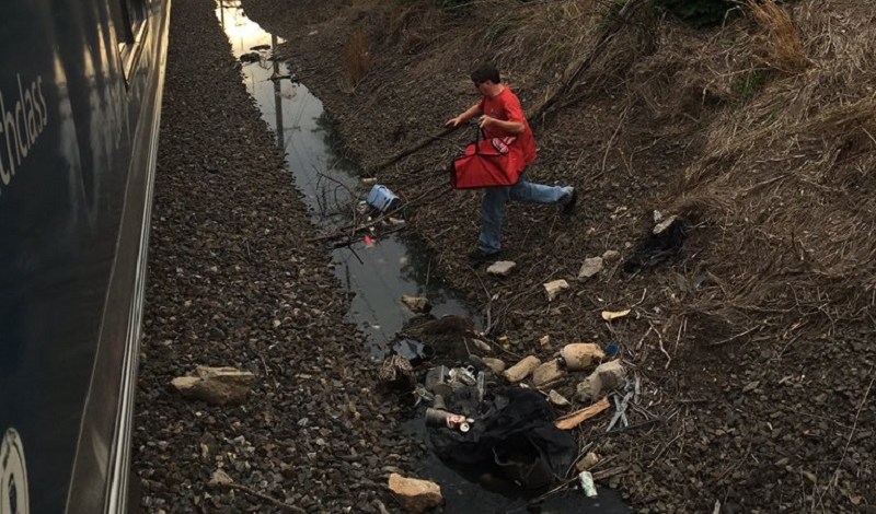 Un comprometido repartidor de pizza no dudó en llevar el pedido a los pasajeros de un tren con problemas mecánicos