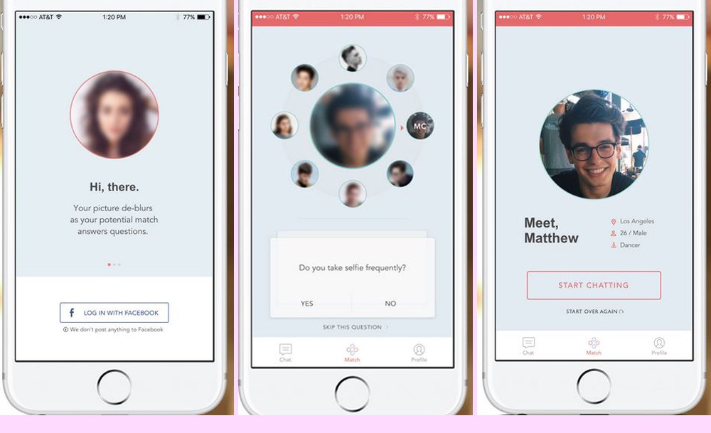 Se trata de Blur, una app gratuita en la App Store donde las fotos de los candidatos aparecen borrosas. Para conocer a alguien, debes responder un cuestionario con tus propios gustos y aficiones y, con base en tus respuestas, la aplicación elegirá fotos que se van haciendo más claras cada vez que tus respuestas coinciden con la personalidad de algún candidato.