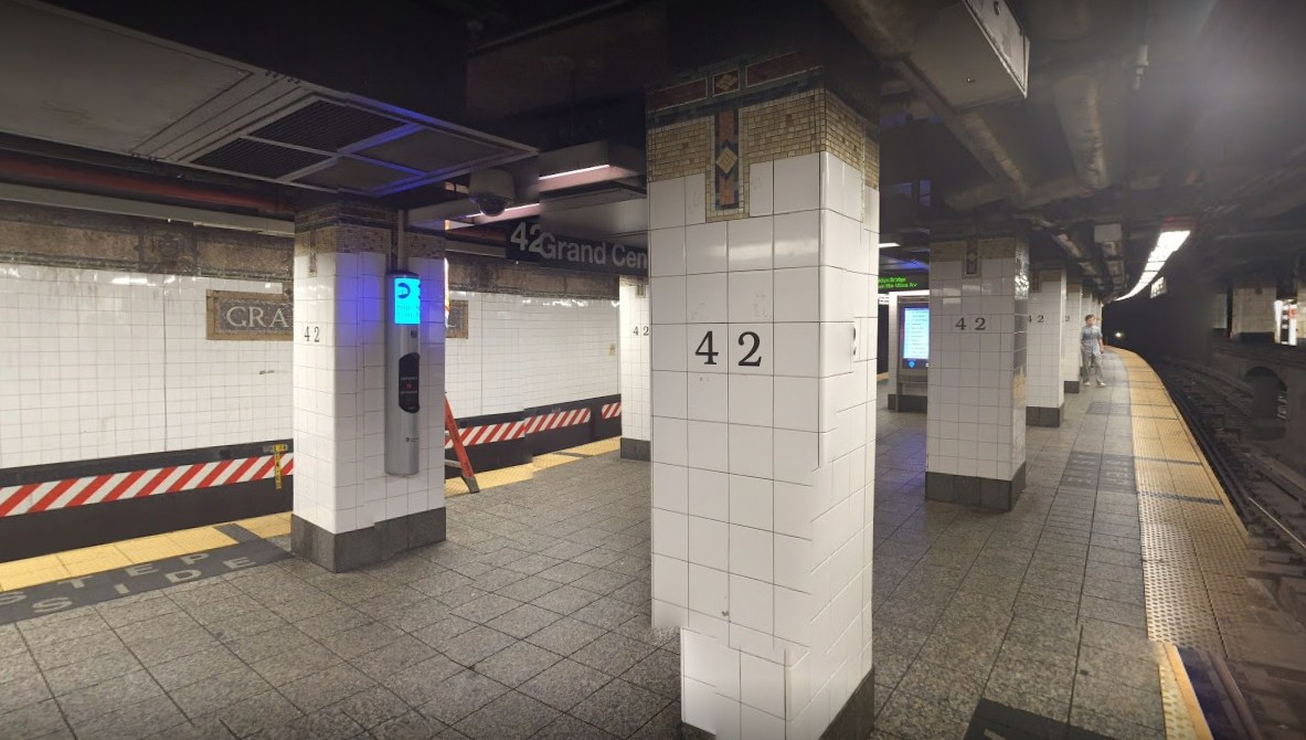 La víctima de 35 años salía del tren 5 en la estación Grand Central- 42 Street cuando la golpearon. Crédito: Google Maps