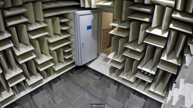 El aposento de Microsoft desarrollado para probar nuevos equipos, como altavoces para tablets y laptops, superó el récord previo que había establecido Orfield Laboratories en Minneapolis, con una cámara similar, pero con niveles de -9.4 decibeles.