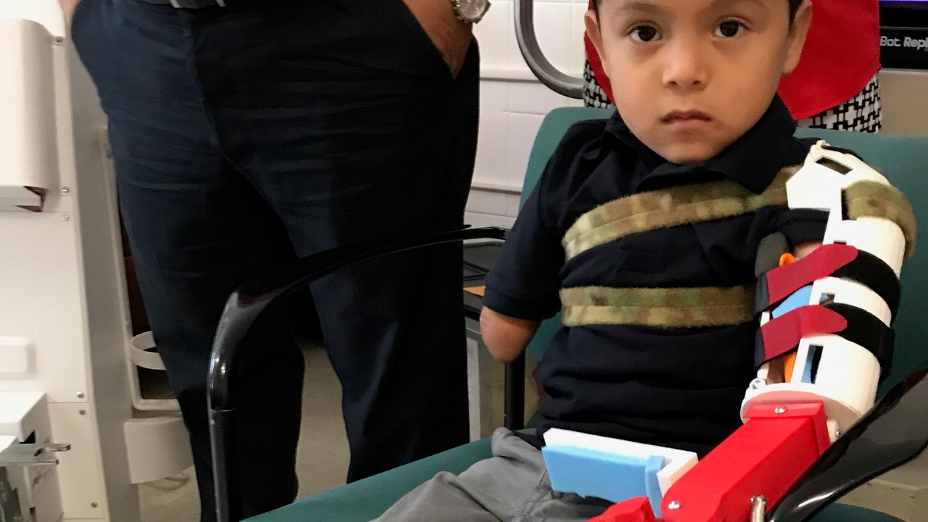 El niño hondureño de tres años, Isaac Cruz, se convirtió en el paciente más pequeñoen recibir una prótesis creada con tecnología de impresión en 3D.