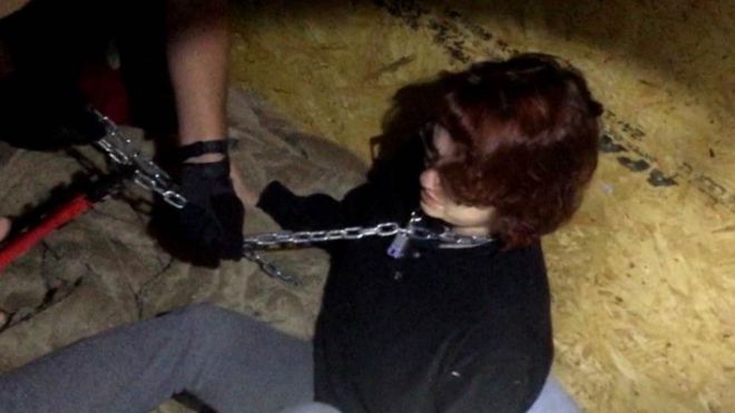 Las brutales imágenes de mujer a la que hallaron encadenada dentro de contenedor