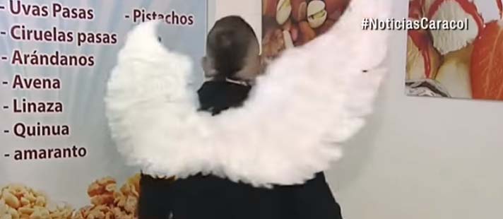 Julio Pérez es mucho más que un comerciante colombiano. Al residente de Bucaramanga, en el departamento de Santander, le llaman el “Arcángel del dinero”. Recorre las calles con alas y aureola y reparte dinero a los necesitados y a los no tanto.