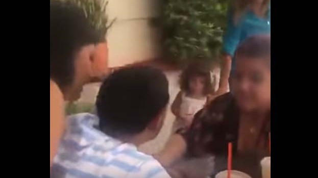 El hecho habría ocurrido en Estados Unidos, aunque la fecha del incidente se desconoce. Un video muestra a una chica cuando llega a una cafetería y sorprende a su novio en el exterior mientras éste comparte con otra muchacha en una mesa.