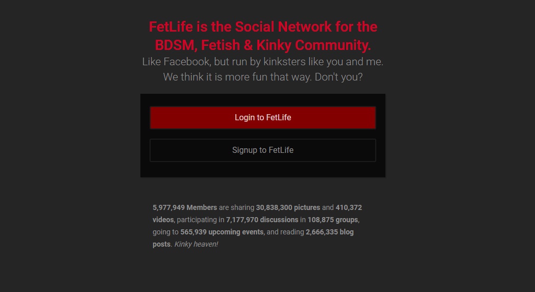 El sitio web se describe como “la red social para el BDSM, fetichismo y comunidad retichista” y presume una comunidad de más de cinco millones.