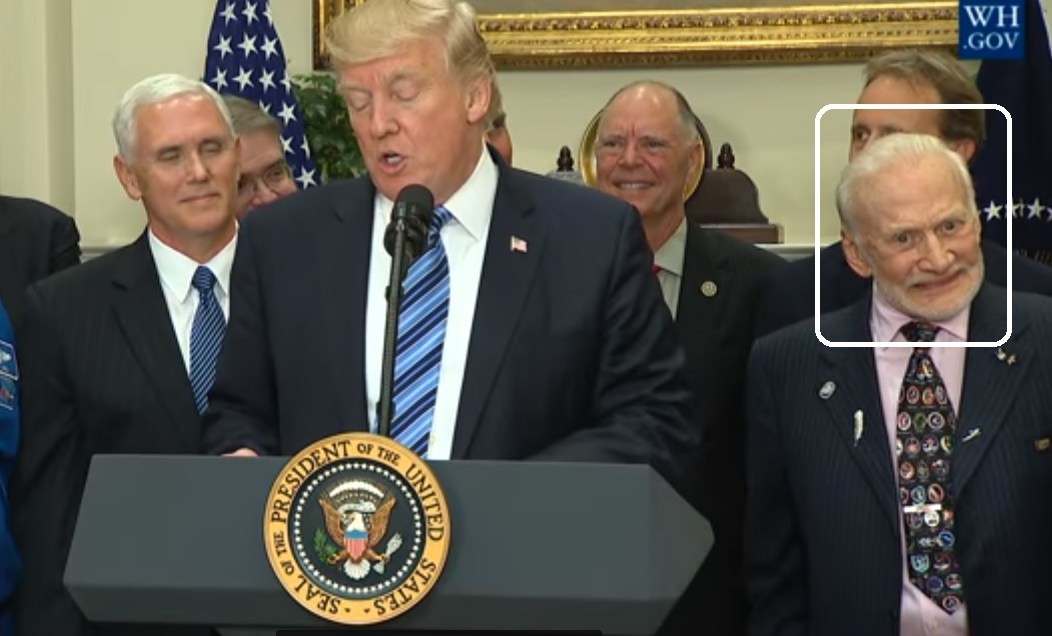 El presidente Donald Trump habló del espacio de una forma tan singular que los astronautas que lo acompañaron en un evento en la Casa Blanca, particularmente Buzz Aldrin, hicieron muecas imperdibles.
