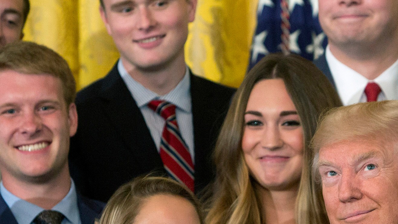 El presidente Trump durante su fotografía con becarios de la Casa Blanca. Crédito: Chris Kleponis-Pool/Getty Images