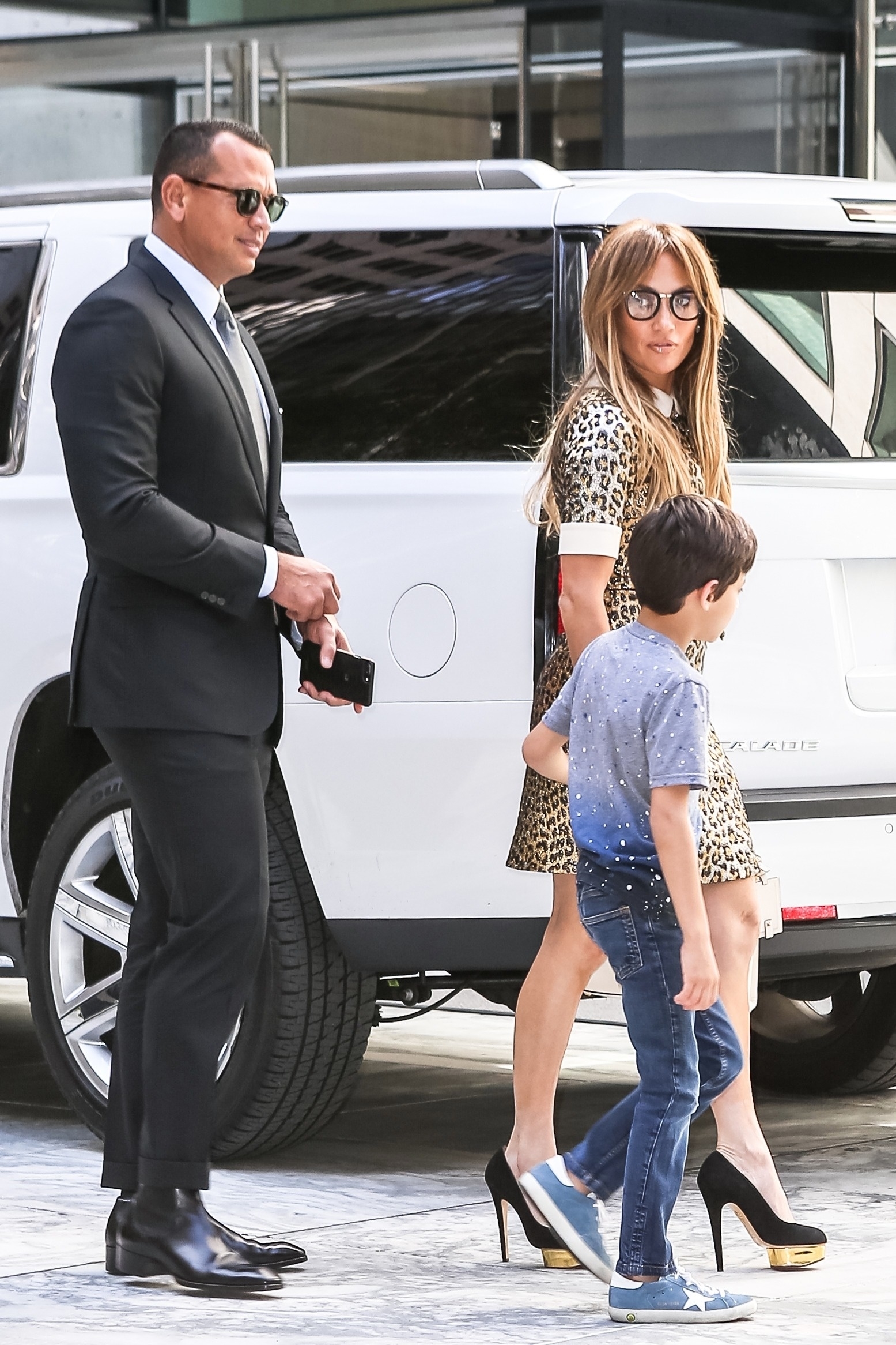 Junto con “la diva del Bronx” estaban Alex Rodríguez y su pequeño Mex que salían para ir de paseo.