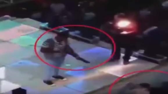 Imágenes de video muestran el momento en que un amigo de la pareja de recién casados irrumpe en el escenario con una escopeta para “celebrar” el enlace disparando al aire.
