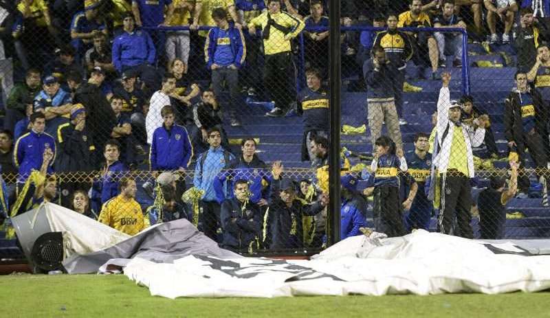 Aficionados de Boca Juniors tras el episodio del gas pimienta en el túnel por donde regresaban los jugadores de River Plate al campo de la Bombonera. (Foto: JUAN MABROMATA/AFP/Getty Images) Crédito: JUAN MABROMATA | AFP/Getty Images