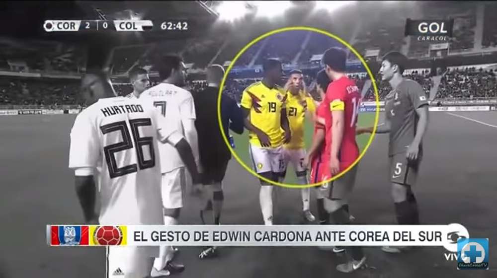 Edwin Cardona hizo una seña racista a los jugadores de la selección de Corea del Sur Crédito: Captura TV