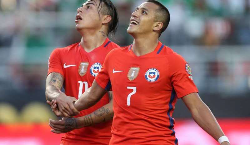 Los chilenos Alexis Sánchez y Eduardo Vargas, en la Copa América. Crédito: EFE