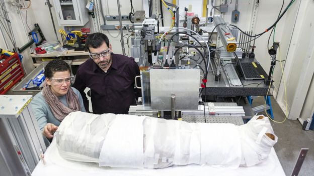 Científicos de un laboratorio líder en Estados Unidos están utilizando una forma de rayos X de última generación para escanear una momia egipcia que nunca se ha desenvuelto desde su excavación hace un siglo.