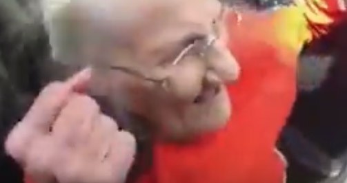 La anciana anda sostenida por un bastón. Crédito: (Captura / YouTube)