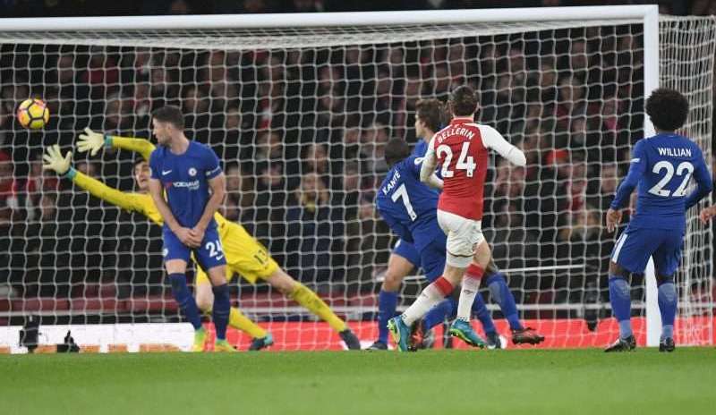 Un gol de Héctor Bellerín en el descuento evitó la derrota del Arsenal, que empató 2-2 ante el Chelsea, y desbancó de la segunda posición al conjunto londinense en el que brilló Marcos Alonso con un gran partido y su sexta diana del curso.