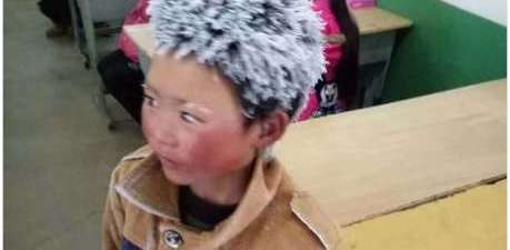 Tras caminar más de una hora para ir a la escuela con un clima de -9 grados bajo cero, un niño llegó con su cabello y cejas cubiertos de blanco por el hielo que se formó en su cabeza y rostro ante el gélido clima, lo que provocó sorpresas y risas entre sus compañeros y del propio profesor que quiso captar el momento en un fotografía.
