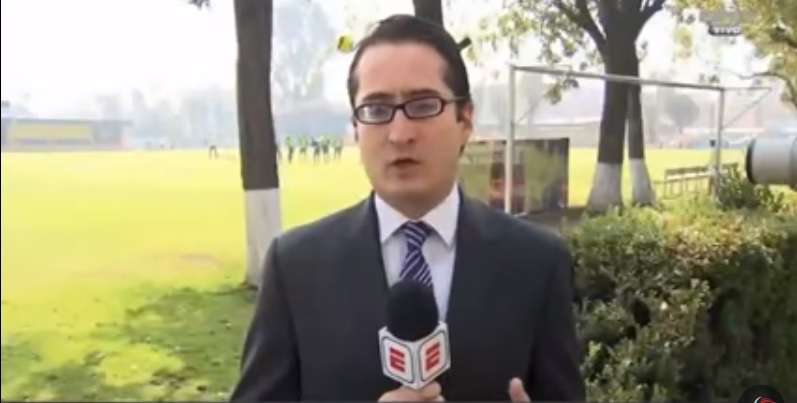 El martes, el reportero transmitía en vivo cuando a su espalda el colombiano le pegó al balón y éste pasó a un lado del comunicador.
