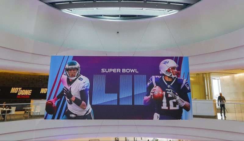 Un banner del Super Bowl LII que jugarán los Philadelphia Eagles y los New England Patriots destaca en el Mall of America,de Bloomington, Minnesota (Foto: EFE/EPA/ERIK S. LESSER) Crédito: ERIK S. LESSER | EFE/EPA