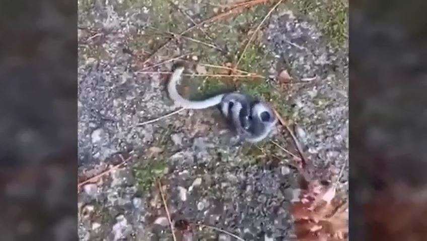 Esta persona captó el momento en el que el reptil de unos 20 centímetros de largo se retorcía en el suelo mientras las testas, ubicadas en cada extremo del cuerpo, luchaban una en contra de otra.
