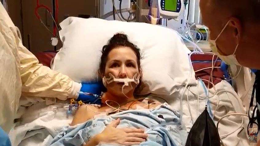 La mujer no daba crédito que estuviera respirando por ella sola. Crédito: YouTube