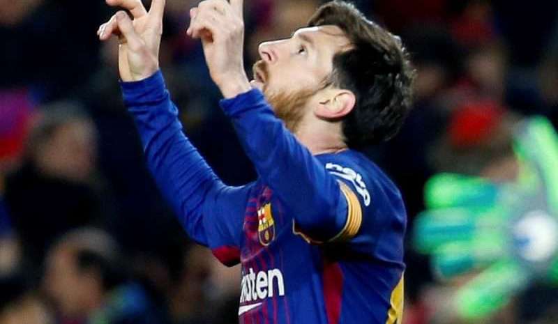 El delantero argentino del Barcelona Lionel Messi celebra su segundo gol ante el Girona,en honor a su abuelo. (Foto: EFE/ Enric Fontcuberta) Crédito: Enric Fontcuberta | EFE