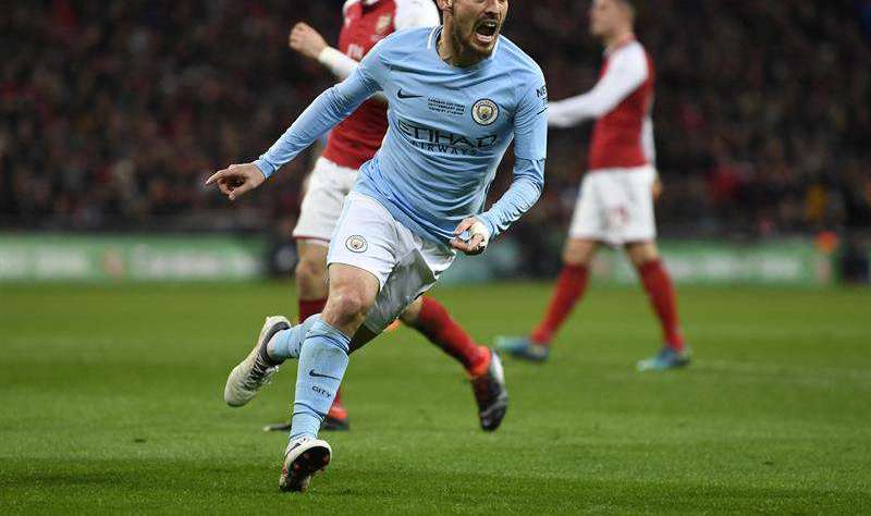 David Silva celebra el tercer gol ante Arsenal. EFE Crédito: EFE