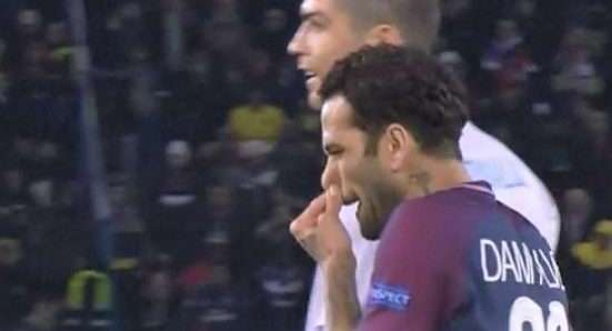 Dani Alves le pegó un moco a Cristiano Ronaldo en la camiseta