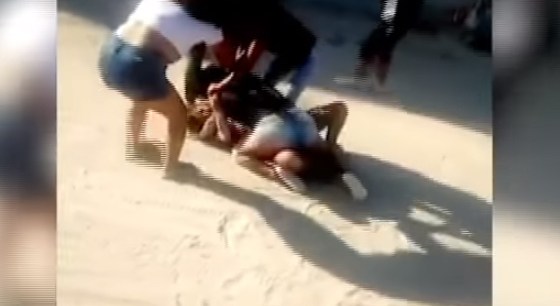En el clip se ve cuando la pareja rueda por el suelo mientras intercambia puños y golpes.