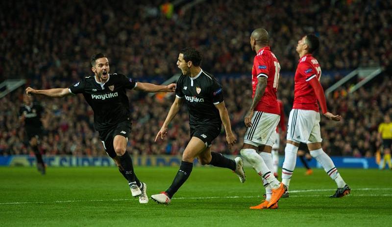 Un Sevilla aguerrido eliminó al Manchester United de la Champions League al vencer 2-1 en Old Trafford por los octavos de final.