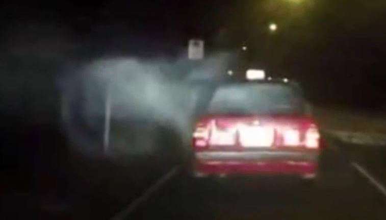 Se aprecia claramente una gran mancha blanca junto al taxi. Crédito: YouTube