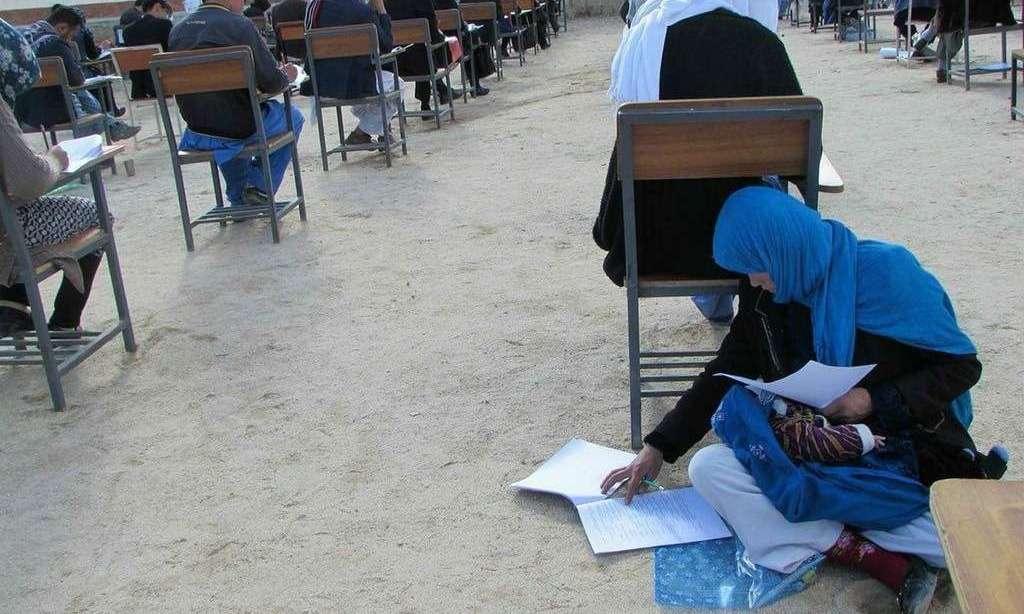 Inspiring photo from social media: this mother is taking university entrance exam while taking care of her child, in Daikundi. Afghan women are unstoppable. pic.twitter.com/lus0eeuH48