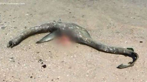 Un hombre que vive en Georgia, Estados Unidos, llamado Jef Warren, se encontraba viajando en un barco con su hijo cuando de repente, notaron el cuerpo sin vida de una extraña criatura marina, que a simple vista, pareciera ser como el famoso monstruo del lago Ness.