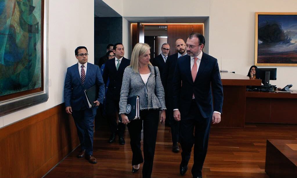 Tanto la Secretaría de Relaciones Exteriores (SRE) como el DHS compartieron imágenes de los encuentros entre la funcionaria estadounidense, el canciller Luis Videgaray y el secretario de Gobernación mexicano, Alfonso Navarrete Prida.