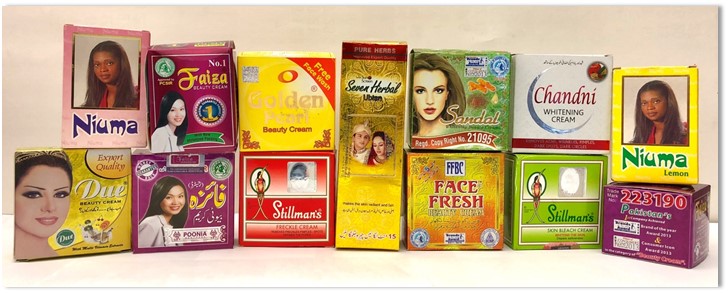 Las cremas para aclarar la piel que contienen mercurio provienen de Pakistán y los jabones medicinales son de España. Crédito: DOHMH