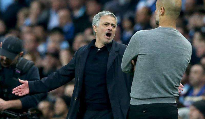 José Mourinho, técnico del Manchester United y Pep Guardiola, técnico del Manchester City Crédito: EFE