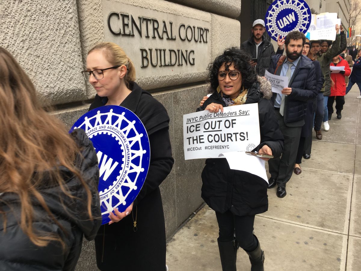 Así lo aseguró Alexi Shalom, organizador de la unión Legal Aid Attorneys, que agrupa a cientos de defensores que advierten que no cesarán sus protestas y exigencias hasta que Nueva York garantice que los tribunales sean considerados zonas sensitivas, al igual que las escuelas y hospitales, donde se prohíba el ingreso de ‘La Migra’.