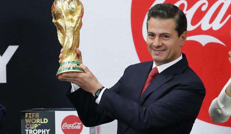 “Esperemos que nuestra selección tenga un gran desempeño para regresar con la Copa Mundial a México, y la traiga como campeona de Rusia 2018“, dijo el mandatario con motivo de la visita a la residencia oficial de Los Pinos del trofeo de del Mundial.