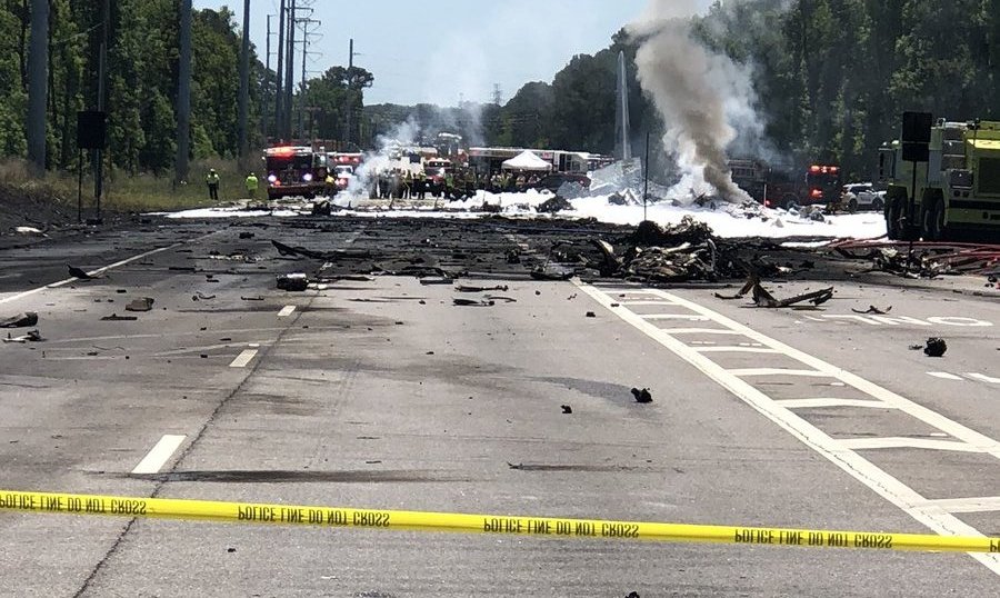 El avión cayó sobre una carretera Crédito: Asociación de bomberos profesionales de Savannah (IAFF)