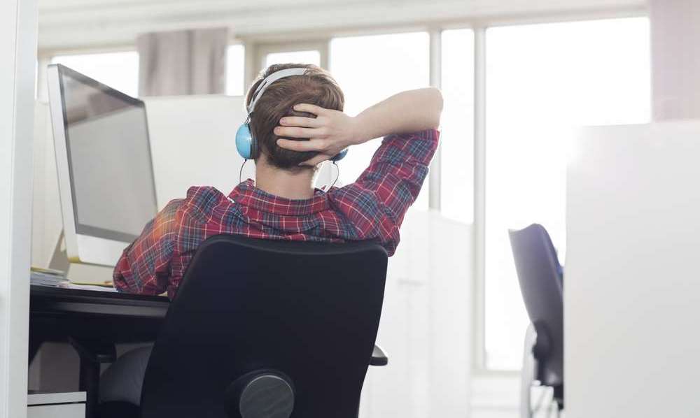 Mala postura y audífonos todo el día, malos hábitos laborales. Crédito: Shutterstock