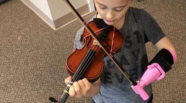Esta niña por fin puede tocar el violín gracias al invento de un prótesis que se lo permite.