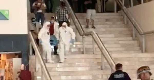 En distintos videos difundidos en redes sociales, se observa cómo pasajeros y empleados del Aeropuerto se tiran al suelo al escuchar un disparo.
