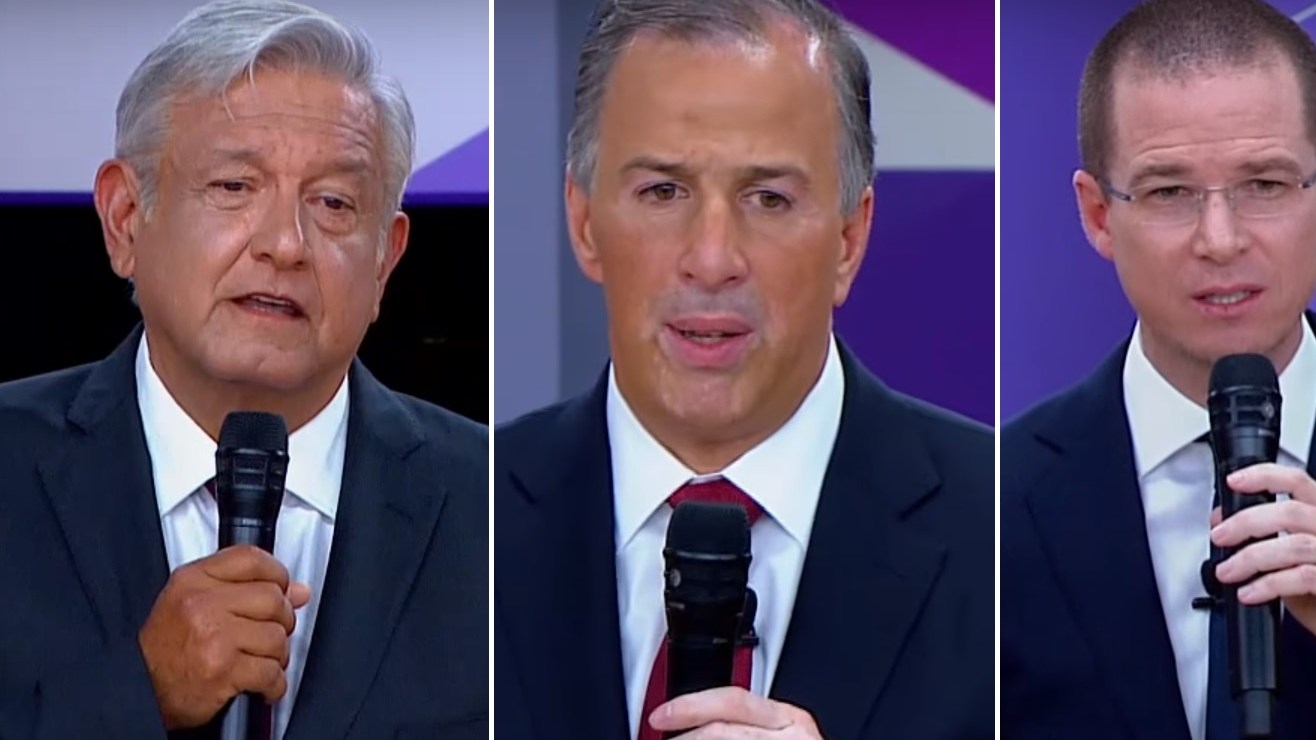 López Obrador sigue al frente de sus competidores más cercanos, Meade y Anaya. Crédito: Captura YouTube / INE