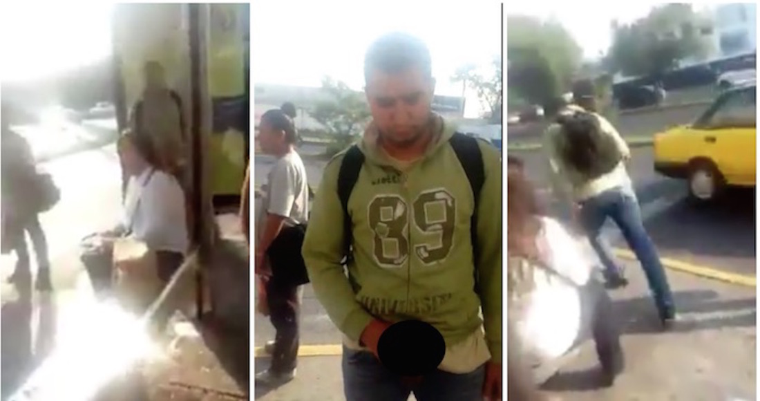 En las imágenes de ocho segundos, se ve a un joven masturbándose a escasos centímetros de una mujer que espera en un parabús.  Crédito: (Sin Embargo)