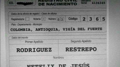 En días recientes se dio a conocer vía Twitter y Facebook que un pequeño nacido el pasado 13 de mayo, en el municipio colombiano de Vigía del Fuerte, Antioquia (noroeste), fue registrado con el nombre de la plataforma de entretenimiento Netflix.