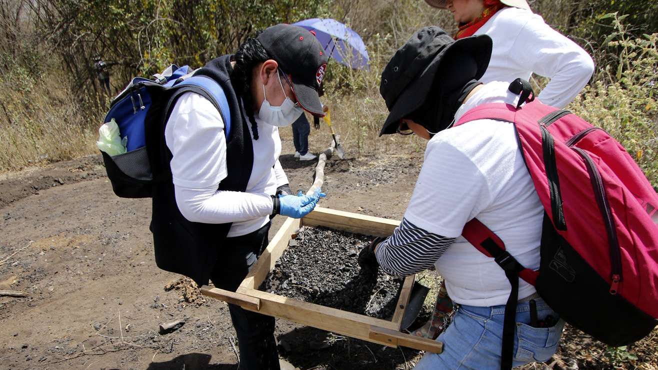 El hallazgo se hizo alrededor de las 11:00 horas del domingo cuando el grupo se internó en un predio donde hay cribas de materiales de construcción, donde en el último año se han encontrado los restos de al menos ocho personas que han sido identificadas con pruebas de ADN.