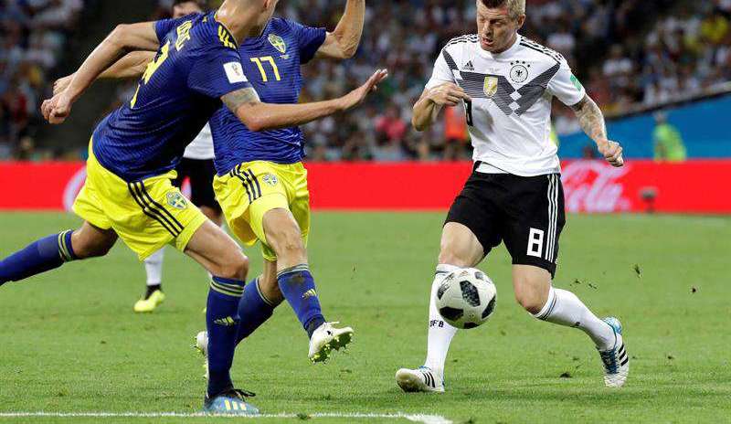Suecia sorprendió en el primer tiempo con un gol de Ola Toivonen después de un error de Kroos en la salida.